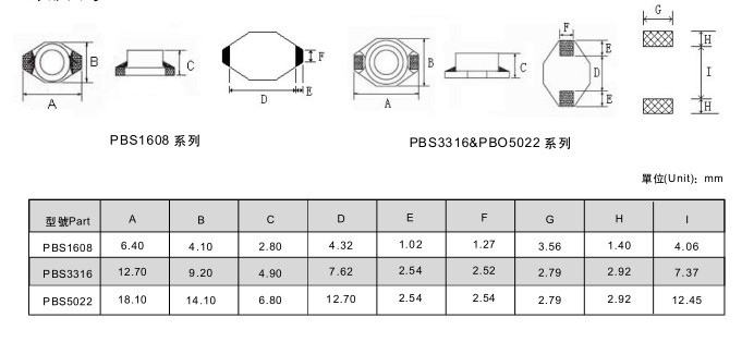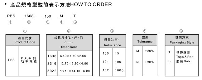 PBS功率電感大電流,屏蔽結構,適合于表面貼裝 適合于回流焊。 應用: .移動通信 筆記本電腦; . 電視錄像機