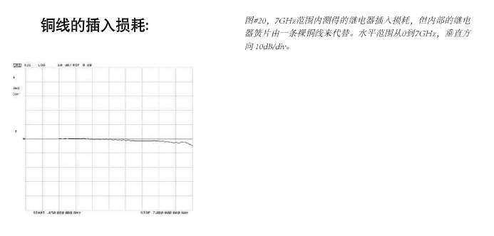 干簧開關(guān)的簧片已被一條純銅線所代替比較圖#19和#20兩圖的區(qū)別非常小或幾乎一致。當(dāng)然在傳輸大功率信號時(shí)還是有些細(xì)微差別的。但我們的許多應(yīng)用的情況下信號功率都是非常低的因此我們在7GHz之前所存在的差異是可以忽略不計(jì)的。