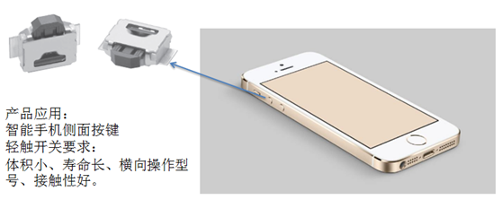 (一)智能手機(jī):建議使用橫向操作型號(hào)開(kāi)關(guān)B3U-3000P-B型號(hào),用于智能手機(jī)側(cè)面按鍵,功能為控制開(kāi)關(guān)電源、控制手機(jī)喇叭的音量。