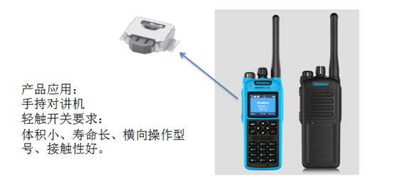 (三)手持對(duì)講機(jī):建議使用橫向操作型B3U-3000P-B型號(hào)開(kāi)關(guān),用于控制手持對(duì)講機(jī)的音量。