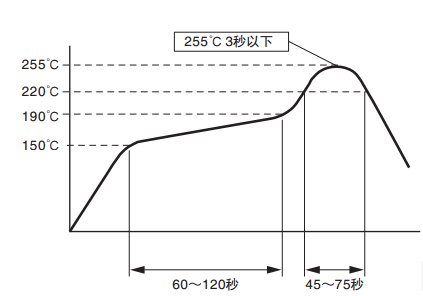 在下圖的端子溫度曲線范圍內,進行回流焊接。有些回流焊接的裝置峰值很高,因此請務必預先進行確認試驗
