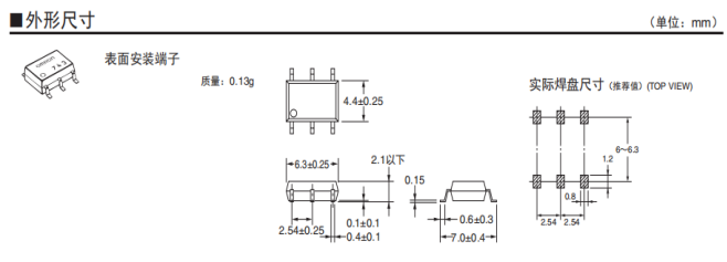 4、低驅動電流 在推薦運行條件(標準)下的驅動電流為2-15mA。還有小可用0.2mA驅動的產品,為整體設備的節能化作出貢獻。接觸可靠性優異,與機械式繼電器相比,能使機械設備小型化,更節能化。