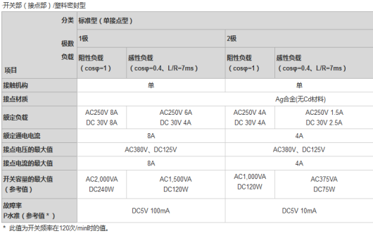 5A(AC250V)開關時,實現20萬次以上的耐久性。