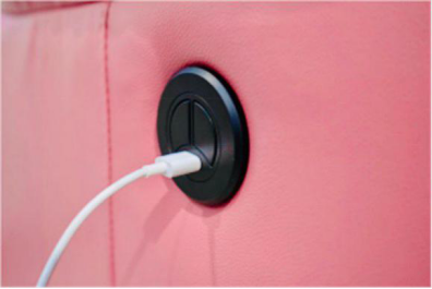 而這款小沙發旁邊設置了開關調節角度和USB充電接口,讓使用者在最方便的位置就能操控沙發的角度。