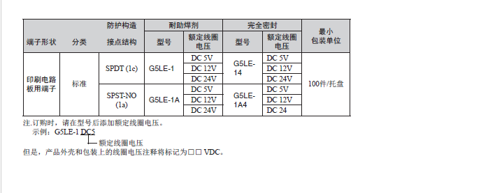 G5LE 印刷基板用功率繼電器