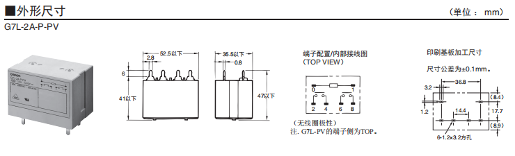 2極 G7L-2A-P-PV DC12、DC24 20個/托盤