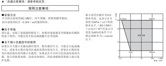 在針狀按鈕型中為了自由位置和總行程位置的數據,在擺桿型中為總行程位置的數據。 接點的閉路或開路在1ms以內。 |