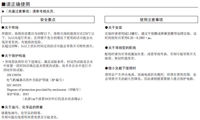 *2. 針狀按鈕型有自由位置和動作限度位置、擺桿為動作限度位置時的值。