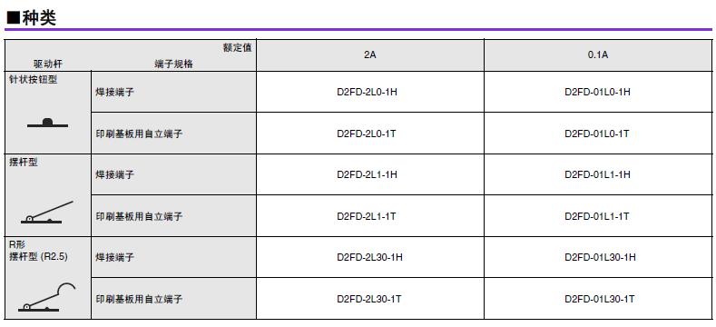 D2FD-2歐姆龍微動開關