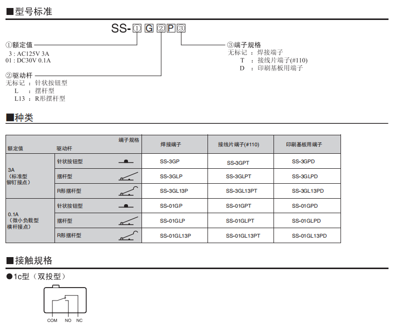 SS-P小型微動(dòng)歐姆龍開(kāi)關(guān)