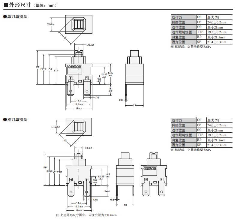 D3DC系列小型門用歐姆龍開(kāi)關(guān)
