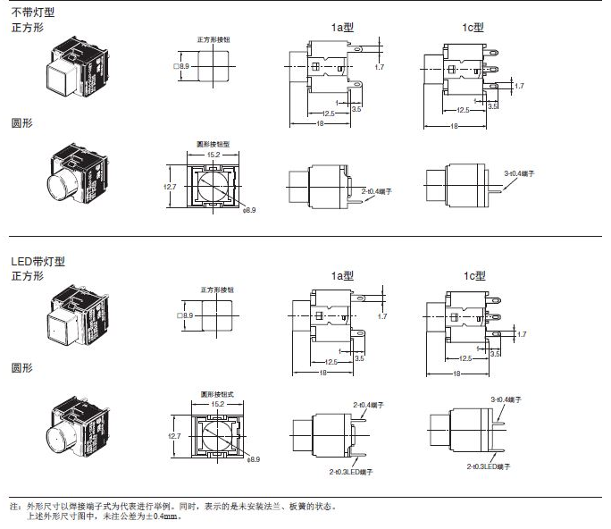 A3C系列按鈕歐姆龍開關(帶燈、不帶燈)(圓型φ12)