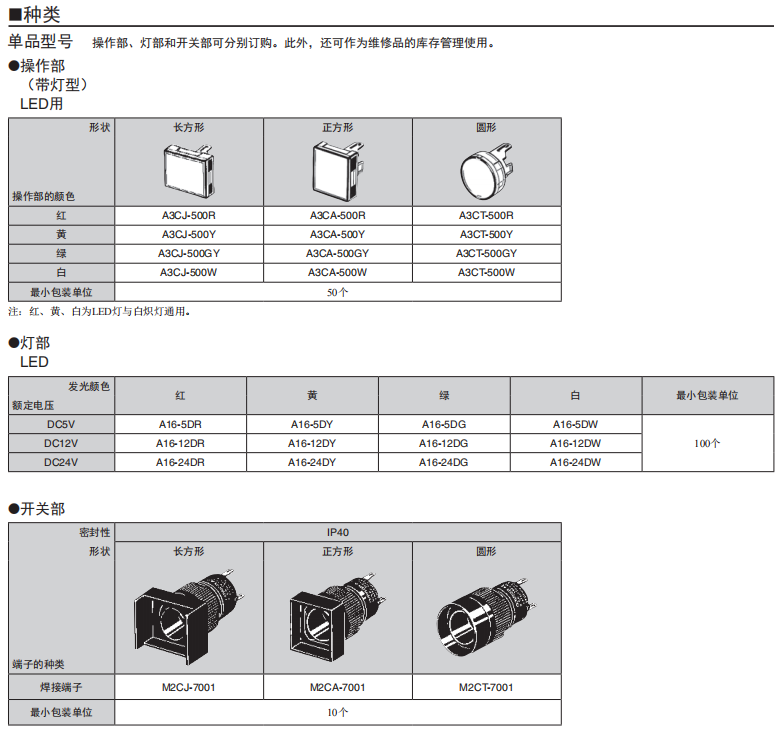A16□-P 按鈕歐姆龍開關(分離式)(帶燈·不帶燈)(φ16)