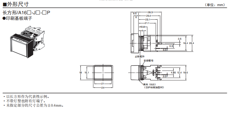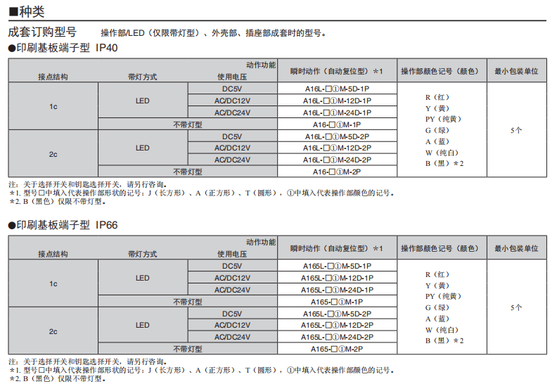 A16□-P 按鈕歐姆龍開關(guān)(分離式)(帶燈·不帶燈)(φ16)
