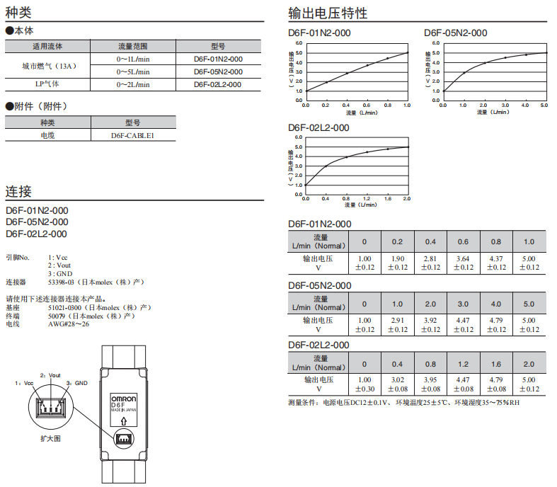 D6F-A7/-N7/-L7燃氣流量歐姆龍傳感器